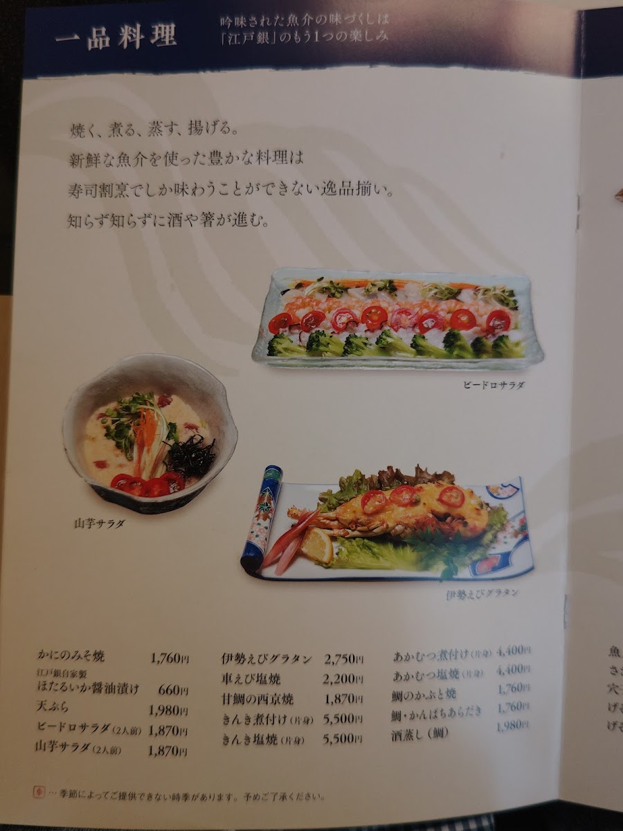 For those seeking a more affordable yet still sophisticated option, the Otegaru Kaiseki Nagomi (お手軽会席なごみ) at 4,950 yen (tax included) offers a delightful introduction to seasonal flavors. This course is recommended by Edogin itself and provides a well-balanced selection of dishes that capture the essence of the season’s freshest produce, ideal for those who want to savor a fine dining experience without going overboard.